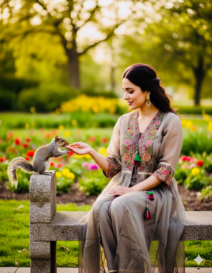 Noorani- Tissue Silk Jacket Suit Set Champagne Grey