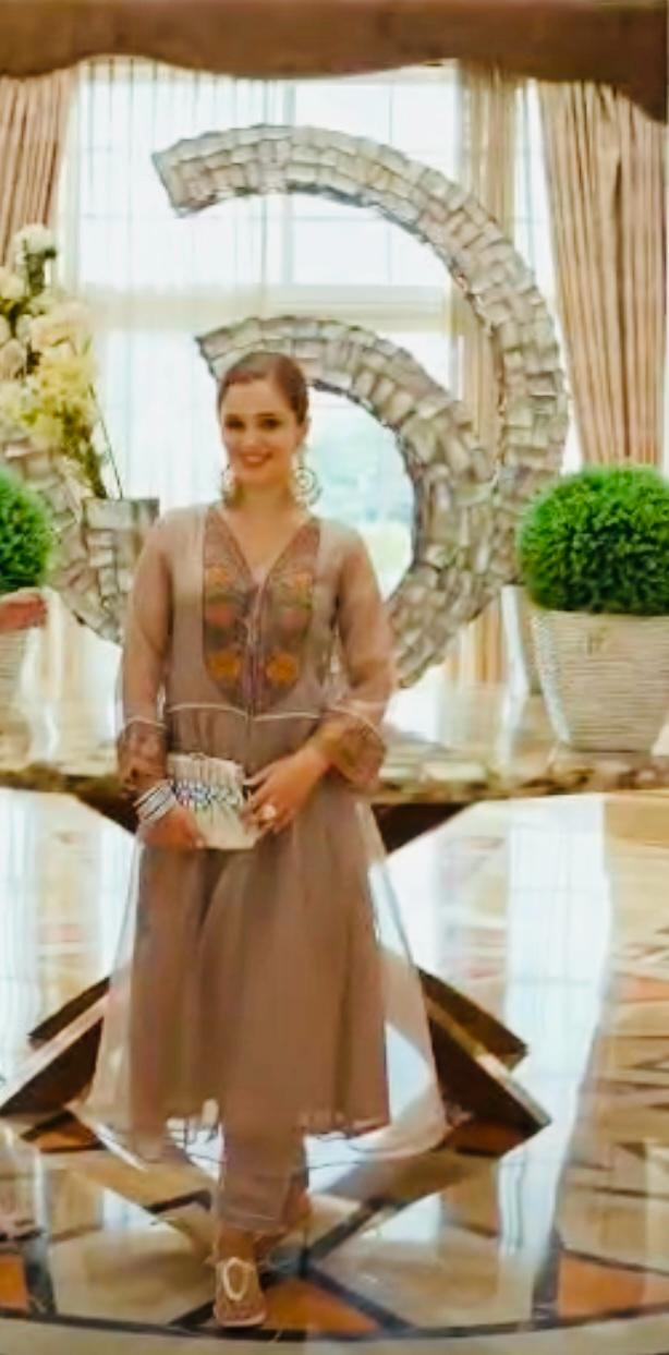 Style Name: Noorani- Tissue Silk Jacket Suit Set Champagne Grey